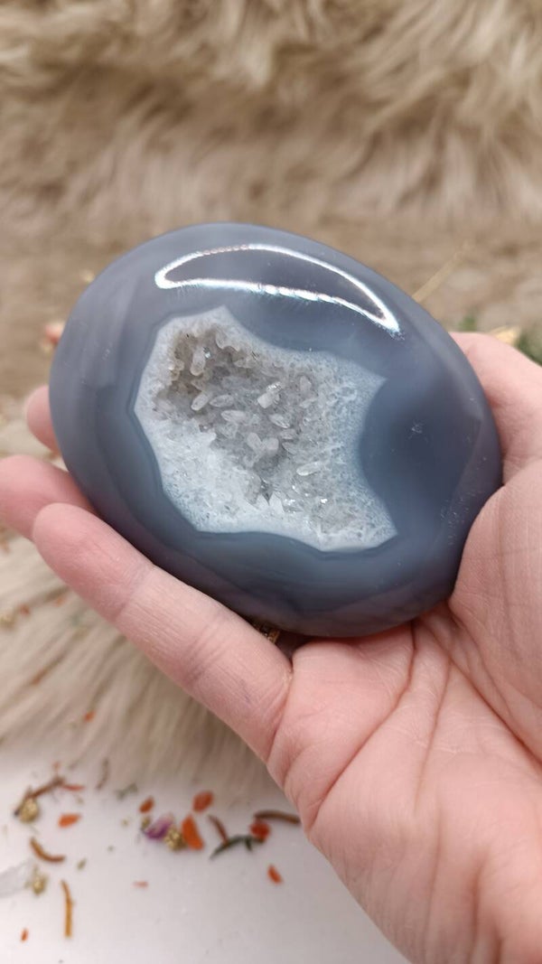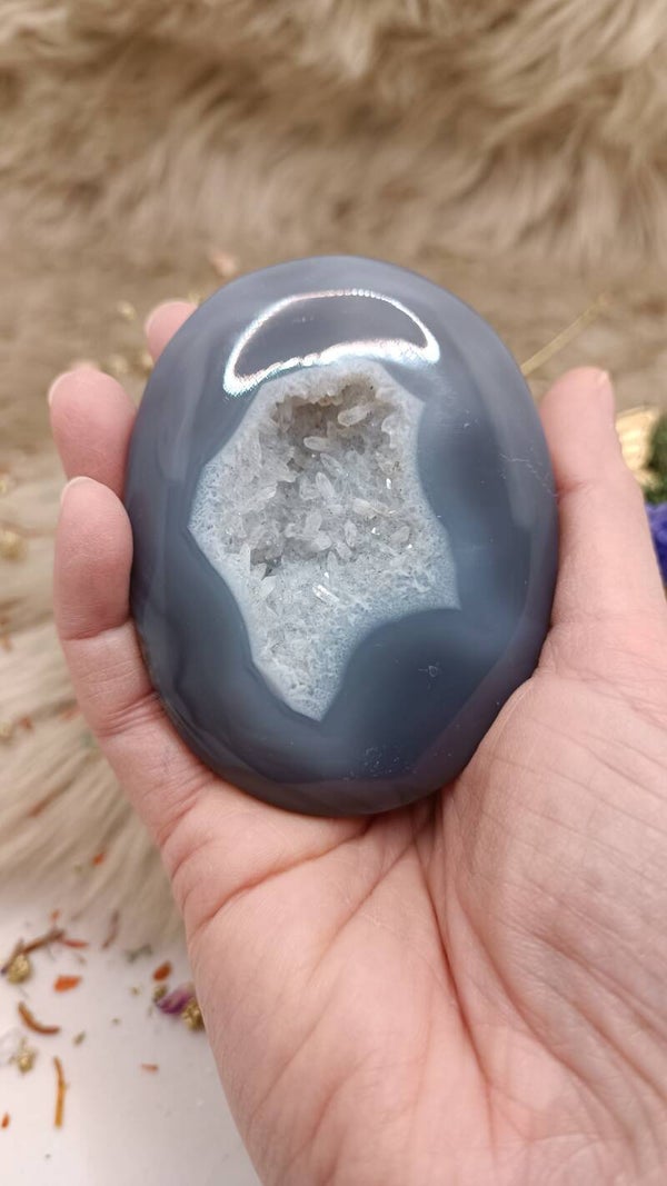 Grijze agaat (gekristalliseerde) geode palmsteen XL - bolvormig