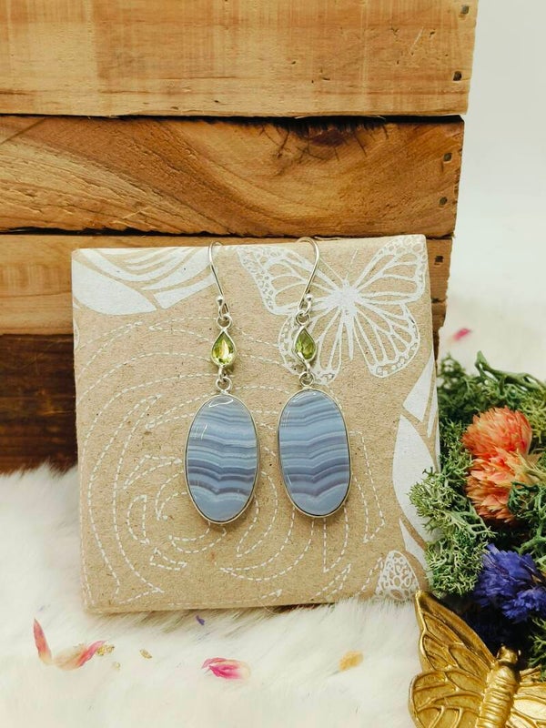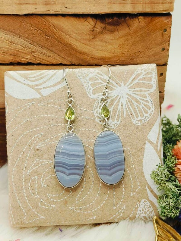 Blue lace chalcedoon met peridoot oorhangers