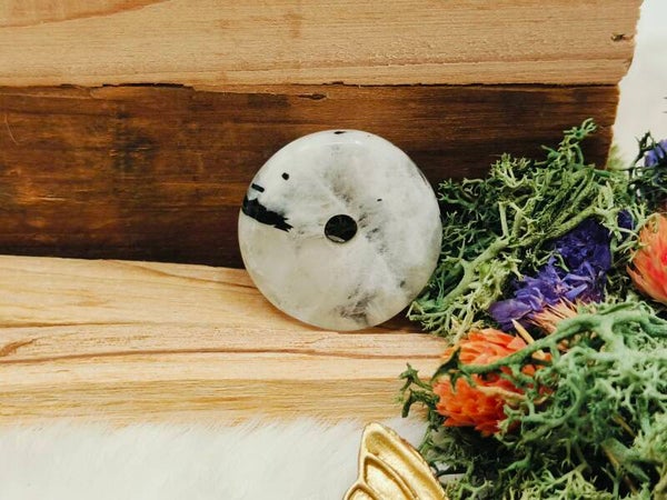 Regenboogmaansteen donut hanger groot