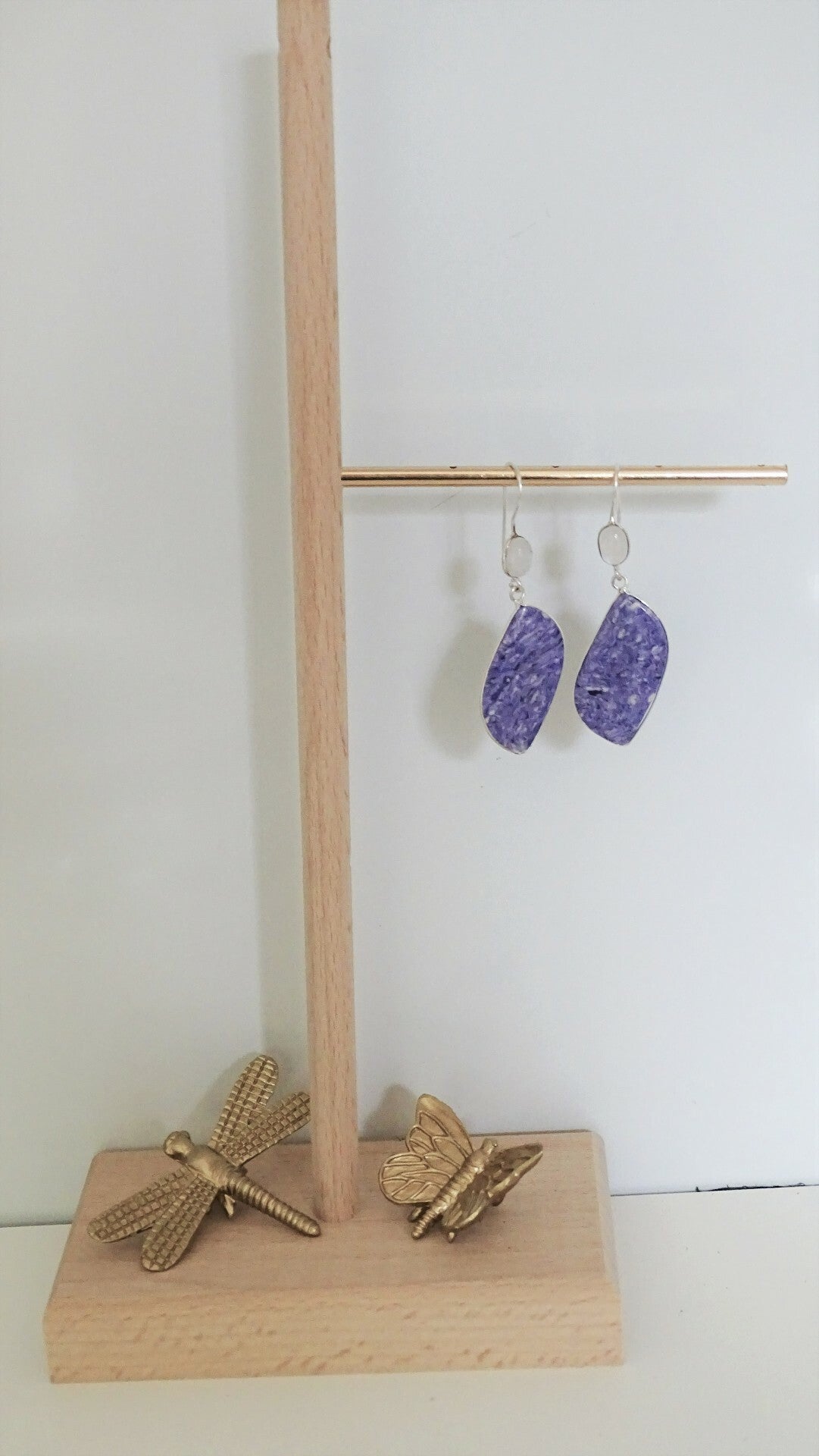 Charoiet zilveren oorhangers